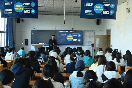 紧接着冯警官指出诈骗手段层出不穷会结合时事不断更新,普遍由团伙作案反侦察能力强。两位警官通过身边的案例纠正了同学们“自己不会遇到诈骗”的心理误区。最后,面对刷单、注销校园贷、虚假投资理财、冒充公检法、杀猪盘诈骗、冒充网络游戏客服等不同类型的诈骗,冯警官提醒我们要辨别不明软件,不随意相信陌生人,增强安全防范意识,要树立正确的价值观和金钱观,抵制不劳而获的观念。