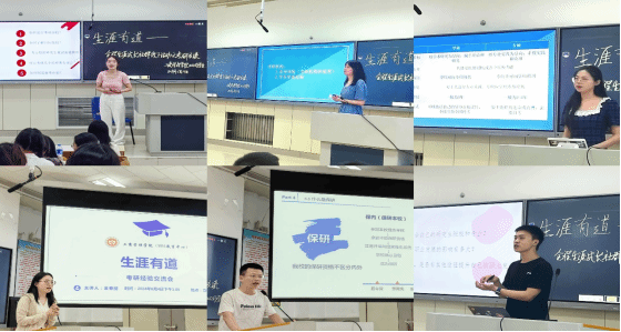 为进一步推进我院本科毕业生就业服务工作前移、打造全程精准生涯指导实践体系,6月4日下午,我院在立信楼201阶梯教室举办了“生涯有道——全程生涯成长社群活动之考研交流会”主题活动。活动由年级辅导员金春丽老师主持,学院2022级拟考研的百余名学生及6位2020级考研、保研上岸优秀学生代表等参加了活动。