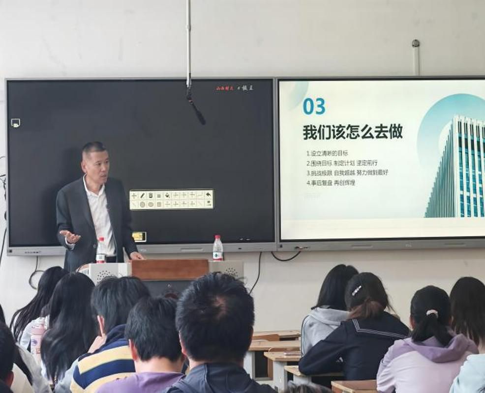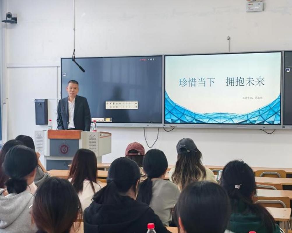 讲座伊始,冯遵刚董事长以自身创业的坎坷经历为脉络,与同学们畅谈大学生的成长与发展。他用真实案例与人生哲理,结合自身实战经验与人生感悟,深刻剖析当代大学生普遍存在的困惑和问题并给出了完整的解决方案。他将人生成长拆分为“无意识无能力”“有意识无能力”“有意识有能力”“无意识有能力”四个阶段,告诫同学们要提纲挈领地把握大学时光,不负韶华。随后,他以机车追梦人张雪的励志故事激励大家,起点不决定终点,学历不代表能力,自我强大才是立身之本,唯有坚守梦想、永不放弃,方能突破局限、实现价值。讲座最后,冯总围绕树立目标、做好规划、养成习惯、坚持复盘、脚踏实地五大核心,为同学们道出成长建议:第一,要明确心中梦想,做好学习与职业规划;第二,做事要追求细致、精致、极致,从小事做起;第三,要坚持复盘,在总结中不断进步;第四,要以锲而不舍的精神面对困难,用奋斗成就自我。冯遵刚的殷切寄语引发全场同学强烈共鸣,同学们纷纷表示,此次讲座使自己深受触动、备受鼓舞,对未来发展有了更清晰的认知与更坚定的方向。