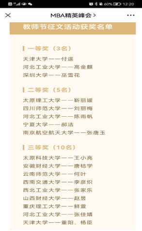 2021年9月9日也是我国的第37个教师节,按照教育部印发《关于做好庆祝2021年教师节有关工作的通知》要求,中国MBA精英峰会举办了以“赓续百年初心,担当育人使命”为主题的教师节征文活动,我院2021级MBA学生赵昱荣获三等奖。