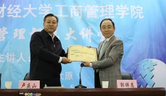 11月5日(星期六)下午,杰出校友、富思特新材料科技发展股份有限公司董事长郭祥恩,以《国学智慧》为主题的学术报告,正式开启了我院“管理智慧大讲堂”。讲座开始之前,卢庆山副校长受刘维奇校长委托,代表学校为郭祥恩校友颁发了兼职教授聘书,岗位设在必威西汉姆官网平台。