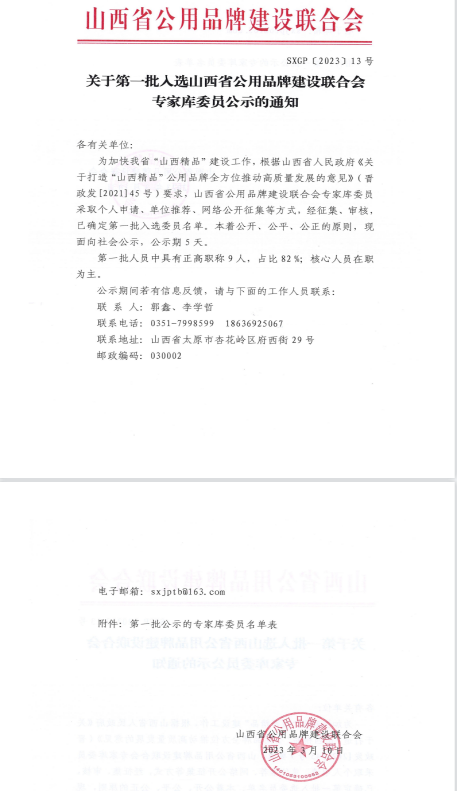2021年底,我省出台《关于打造“山西精品”全方位推动高质量发展的意见》,预计到2025年,我省重点围绕农业、制造业、文化旅游业等优势和特色产业,建成先进的标准体系和认证模式,形成200个左右拥有自主知识产权、市场占有率高的产品和服务品牌。山西省公用品牌建设联合会是由我省区域内相关社会团体、认证机构、检验检测机构、科研机构、高等院校、大中型骨干企业等从事“山西精品”生产、研究和服务的单位、个人组成的社会团体。该联合会负责制定“山西精品”标准管理制度,组织开展“山西精品”认证,规范“山西精品”标志使用,培育“山西精品”品牌等。