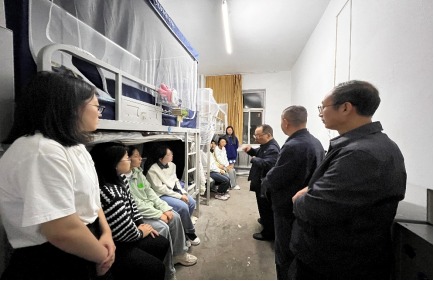 10月7日晚,学院党委书记高岳、院长卫虎林、党委副书记周志刚以及2023级新生辅导员等,在2023级新生入学后正式上课的第一天,深入学生宿舍,为同学们送去关心与问候。