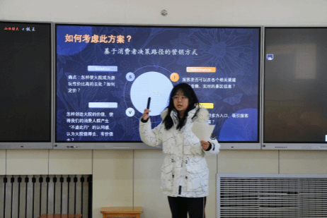 经过一系列培训和反复修改,进入复赛的团队于11月10日提交了参赛策划方案,并于11月12日展示PPT。复赛的7位评审专家均来自市场营销教研室,乔家大院景区营销部曹旭敏部长及其余三位员工旁听了上午的复赛全程,并对各团队方案的丰富性和新颖性表示赞赏。复赛也暴露出一些问题,比如PPT展示时间控制不好、解决方案和问题匹配度不高、方案可行性不强等,评审专家对大部分方案都提出了改进意见。