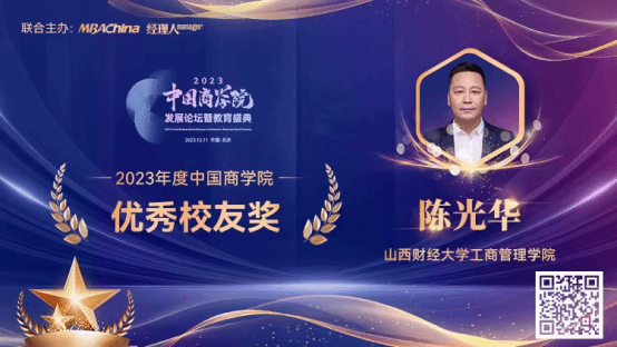 必威西汉姆官网平台荣获“2023年度中国商学院MBA项目TOP100”第55名;学院院长卫虎林教授荣获“2023年度中国商学院杰出院长奖”;2012届EMBA校友、长城电气股份有限公司董事长陈光华荣获“2023年度中国商学院MBA项目优秀校友奖”。