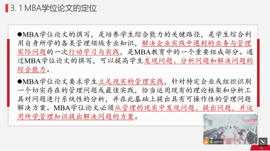 导师代表齐永智、王东升、李燕平和张征分别作了分享。通过互动交流,老师和学生们对MBA学位论文的要求、规范、常见问题及解决方案等有了更加深入地理解。