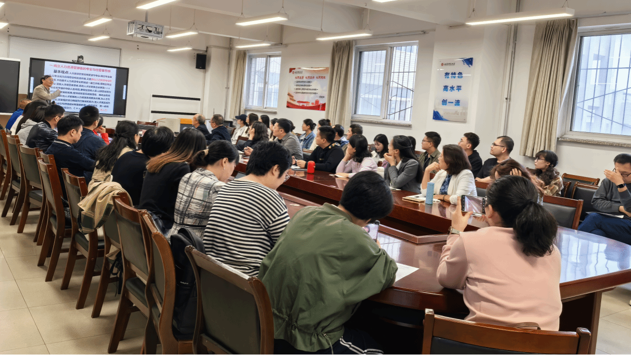 彭剑锋教授以其深厚的学术功底和丰富的实践经验,为在场师生带来了一场精彩的学术报告。他首先通过追溯中国人民大学劳动人事学院人力资源管理专业的辉煌历程,结合自身的学习与工作经历,深刻阐述了人力资源管理的专业内核与学科特色。彭教授强调,人力资源管理者既要坚守专业确立专业自信,又要跳出专业看专业,做一名有专业、懂经营、通人性的人力资源管理者。接着,彭教授以腾讯HR的“三支柱”体系为生动案例,指出战略性人力资源管理是趋势,要认识到人力资源管理是个系统工程。彭教授从CHO的角度,介绍了应该了解和掌握的五十项基本技术与方法,从而以专业性、技术性赢得人力资源管理专业的自信。在报告的高潮部分,彭教授深刻指出,正确的价值观与思维方式比知识技能更重要。他分享了二十条人力资源管理实践观,为在场师生提供了宝贵的思考与启示。