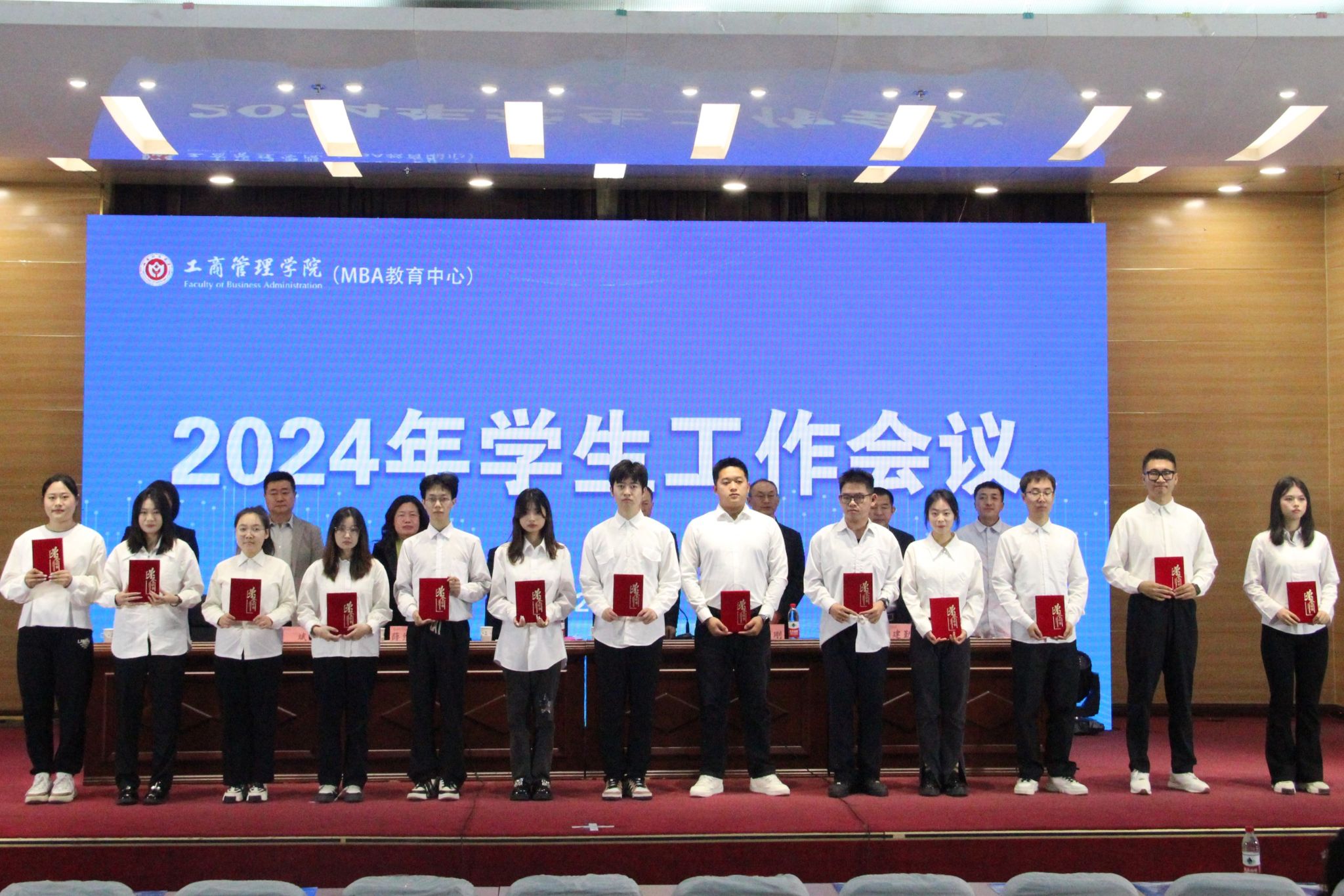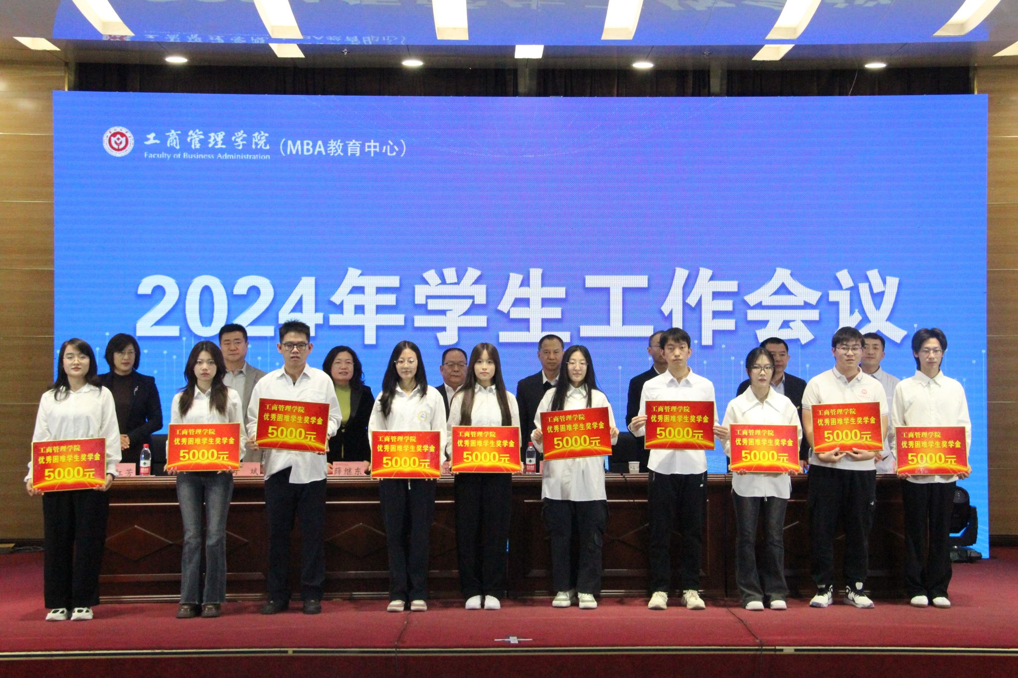 薛继东副院长宣读了《关于表彰2024年暑期社会实践报告优秀学生的决定》;王建勤校友宣读了2024年度“87成人企管一班校友爱心励学基金” 获得者名单。学院全体领导和嘉宾为获奖同学颁发了荣誉证书。