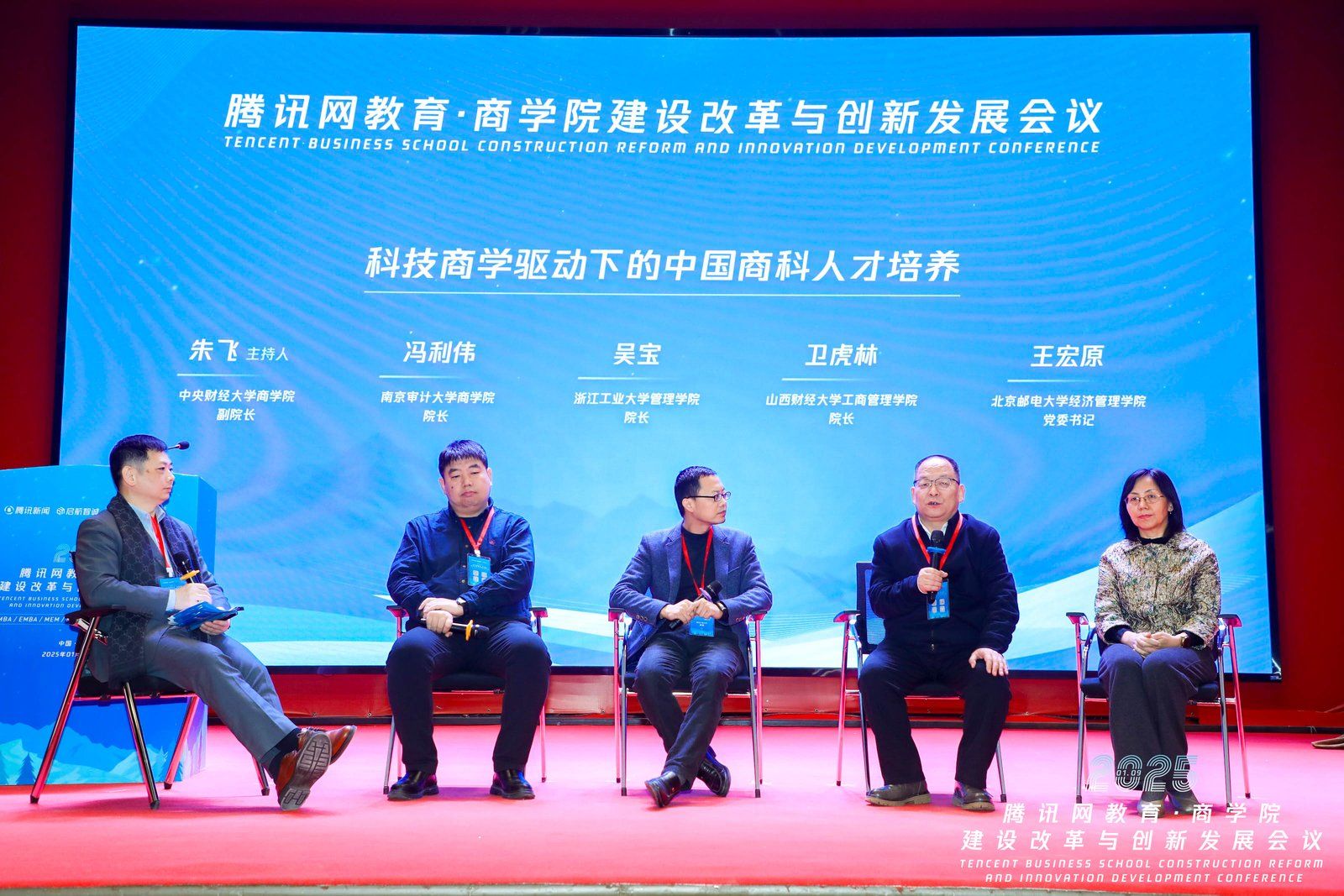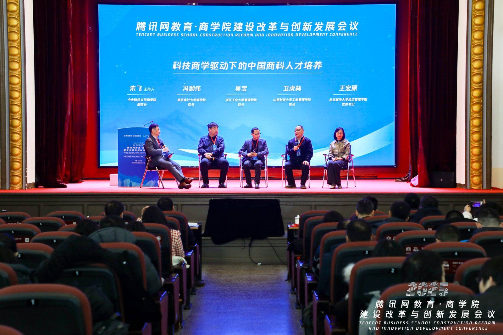 在备受关注的圆桌对话环节,卫虎林院长参与了第一场讨论,该场对话由中央财经大学商学院副院长朱飞主持,与南京审计大学商学院院长冯利伟、浙江工业大学管理学院院长吴宝、北京邮电大学经济管理学院党委书记王宏原等一同聚焦“科技商学驱动下的中国商科人才培养”话题。卫虎林院长结合西汉姆联MBA教育的丰富经验展开分享。