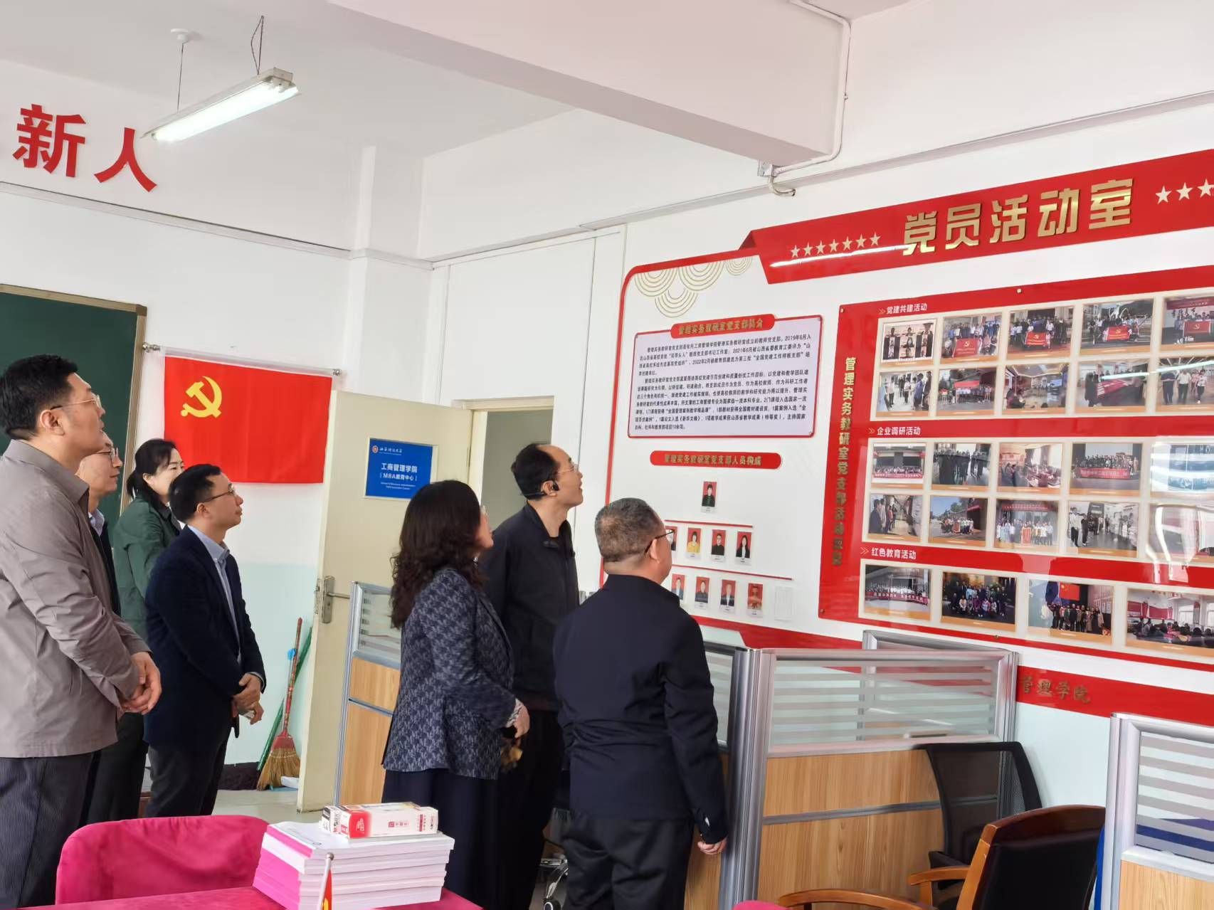 会前,王铁栋一行在学院领导陪同下,实地察看了必威西汉姆官网平台文化墙和第三批“全国党建工作样板支部”——管理实务教研室党支部,就学院的办学理念、使命、愿景、办学特色,以及如何以高质量党建引领学院高质量发展等进行了交流探讨。