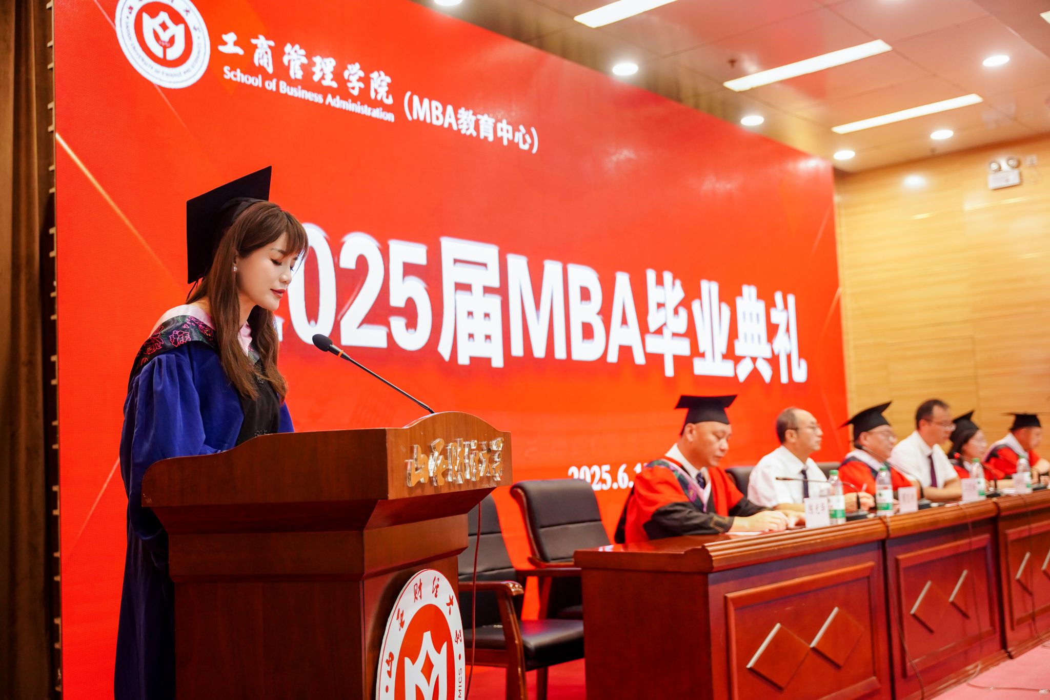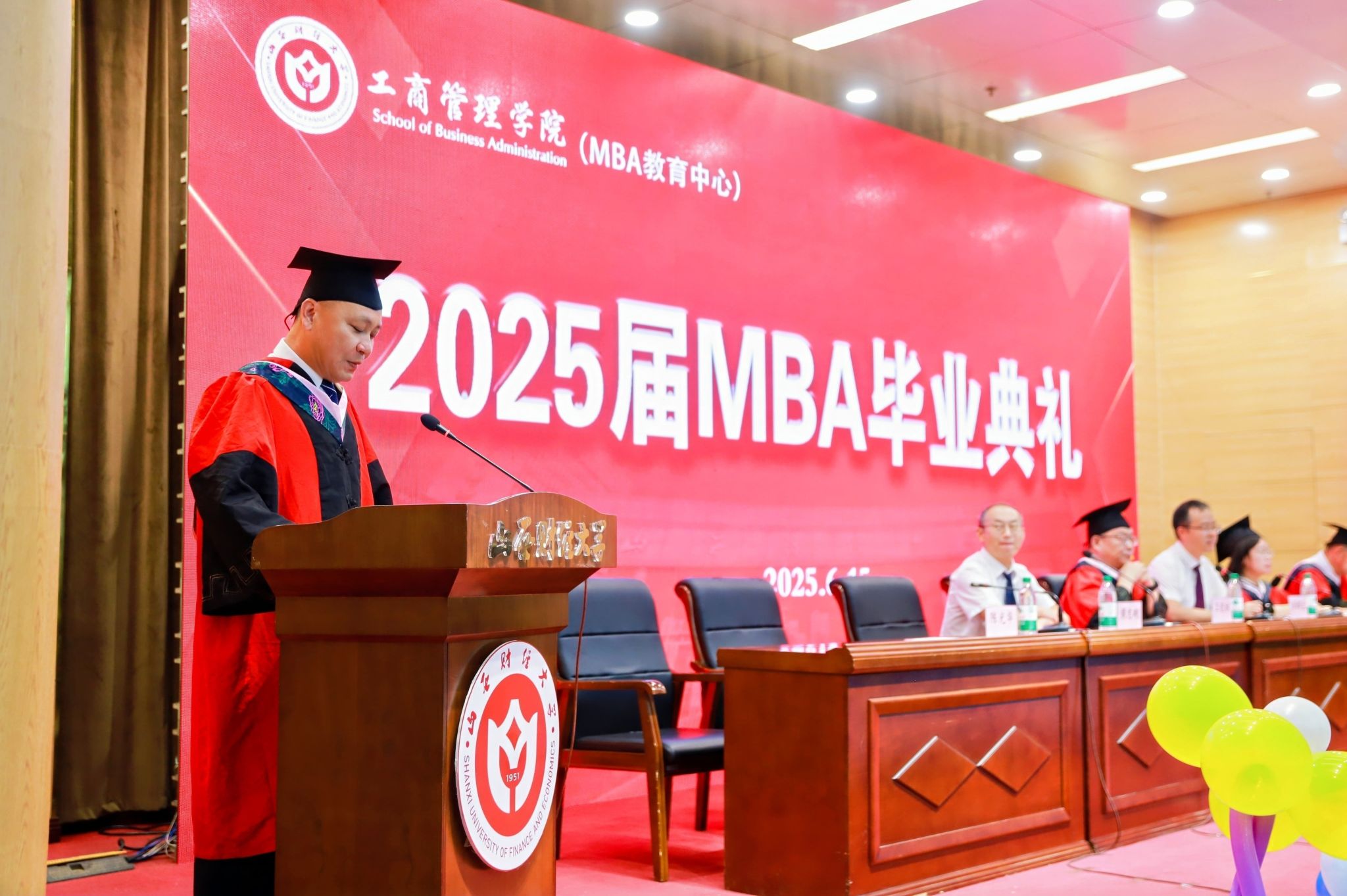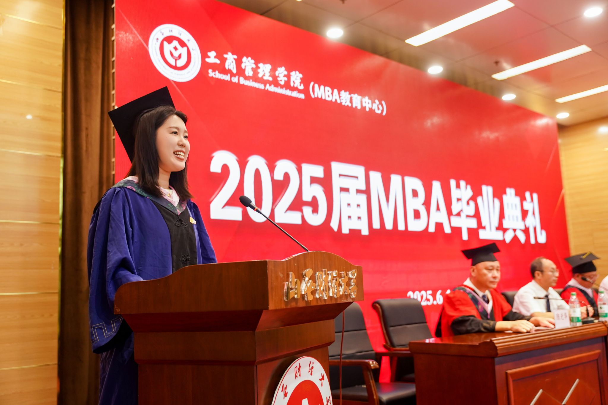 MBA优秀毕业生代表王紫薇追忆在财大多元学习空间的成长,感恩老师启迪与同学并肩学习的时光,表示将带着在财大汲取的智慧与勇气,继续书写时代答卷。