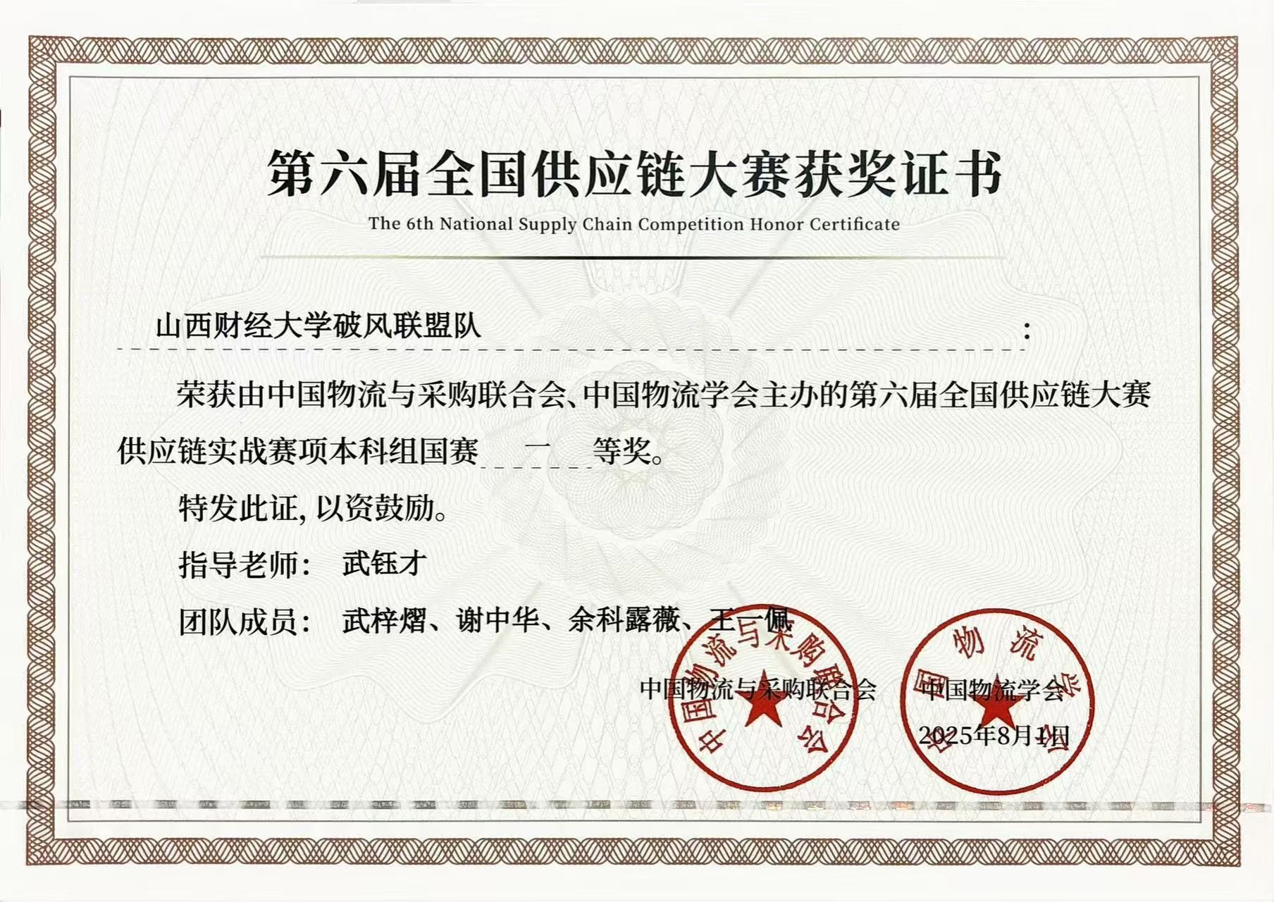 我院参赛队由2022级物流管理专业武梓熠、谢中华、余科露薇、王一佩4名本科生组成。自参赛以来,在武钰才老师的悉心指导下,队员们刻苦训练,积极备战,反复打磨战术方案,从省赛到全国总决赛,充分展现出我院学子扎实的基本功底和超强的学习能力。队员们表示,通过此次比赛,不仅有效提升了自身的物流专业素养,更是强化了团队的合作意识和决策能力。此次获奖是我院多年来坚持产教融合、以赛促教、以赛促学的有力证明,物流管理专业将继续以高水平学科竞赛为平台,将课堂与赛场紧密结合,通过竞赛促进我院国家“双一流”专业建设,再创佳绩。(必威西汉姆官网平台 武钰才供稿)