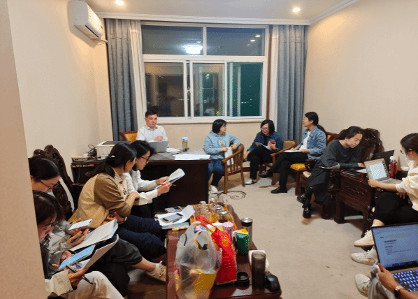9月18日下午,团队抵达西汉姆联国际学术交流中心。当晚8点,组委会正式发布比赛案例《从丝绸匠人到AI先锋:万事利丝绸数智化协同创新之路》。两支队伍迅速进入备战状态,立即展开资料研读与思路梳理。经过多轮深入讨论和反复推敲案例内容,代表队逐步明确了各自的破题方向并形成了分析框架。
