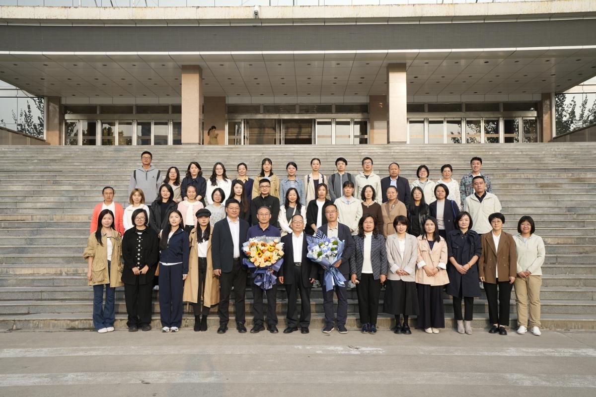 仪式尾声,王霞老师代表全体教职工向卫虎林院长献花,老师们合影留念,共同记录下这温馨而感人的瞬间。