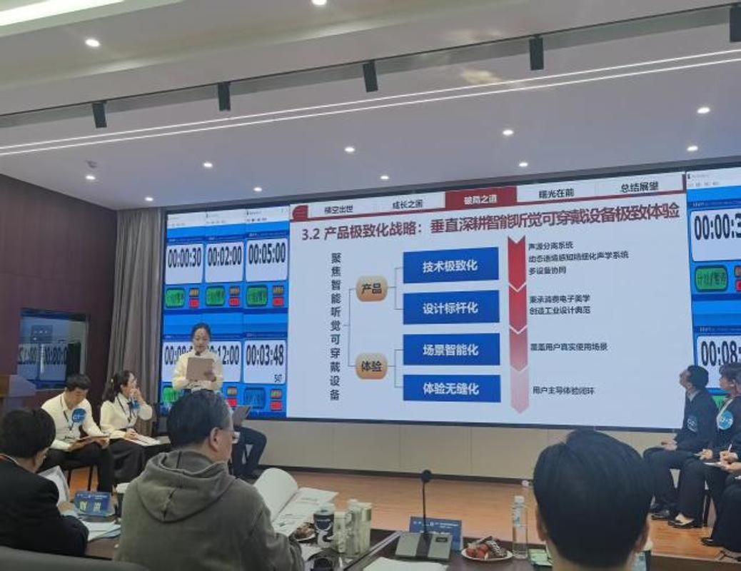 10月23日下午7点,团队抵达郑州入住。晚8点,赛事组委会下发案例《从听得见到听得懂:Orka智能助听器的破坏式创新之路》。团队即刻拆解案例核心问题,梳理行业态势,高效攻坚。高强度备赛尽显团队专业素养与协作力,指导教师解读破题指方向,成员分工明确,各司其职,确保方案落地。经过多轮案例分析与集体研讨,最终确定了“从听懂到相伴:Orka定义智能听觉穿戴行业的战略升维之路”的文案题目,从战略升维角度切入,提出为企业重新定义新品类,通过产品极致化战略、平台服务化战略和生态共同体战略协同发力,实现Orka在新的智能听觉穿戴设备品类中的升维跃迁。
