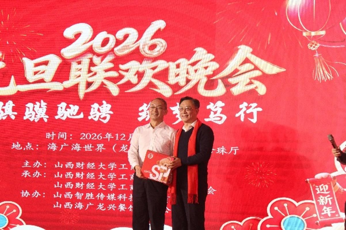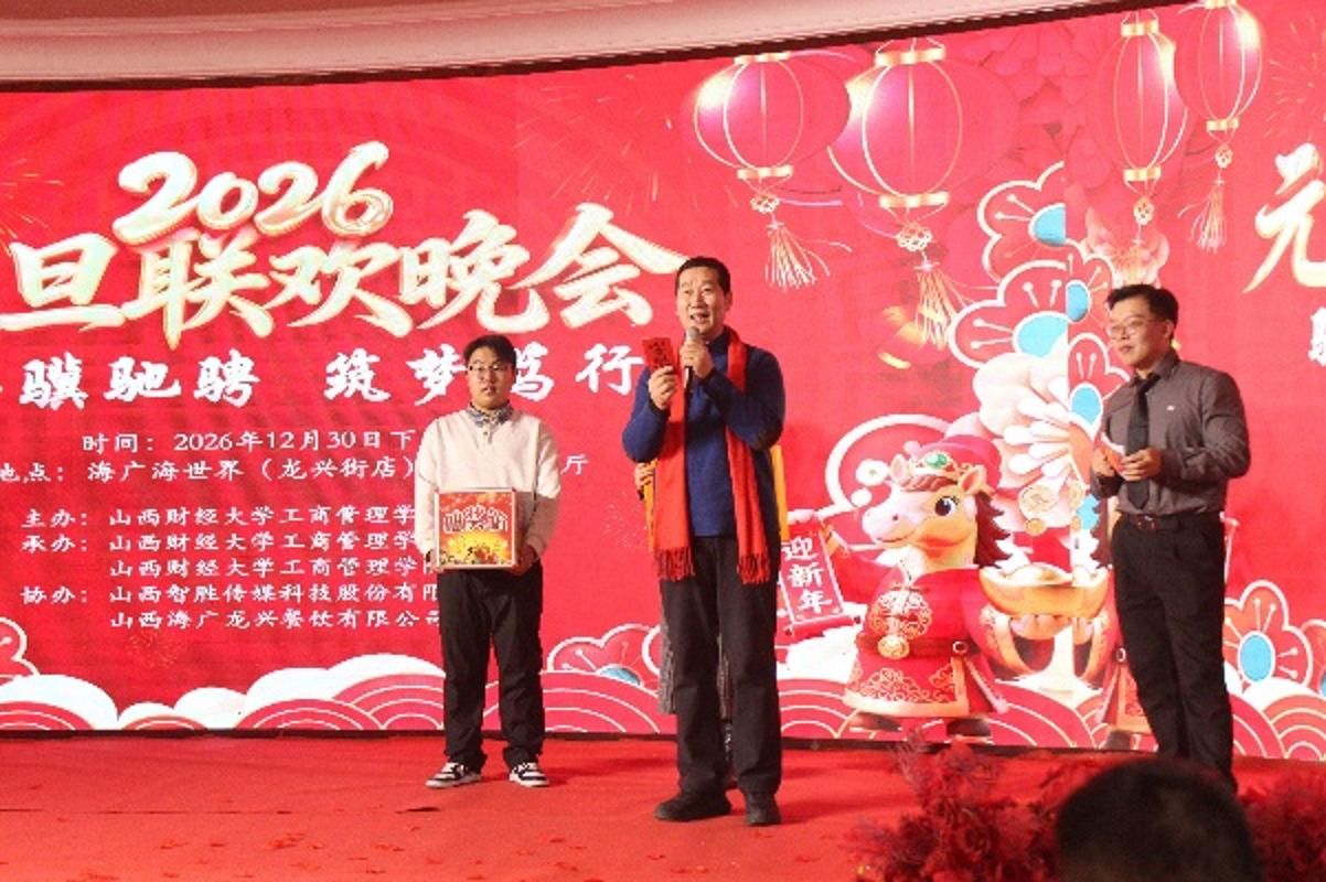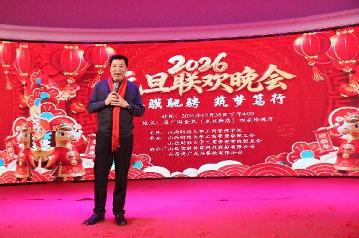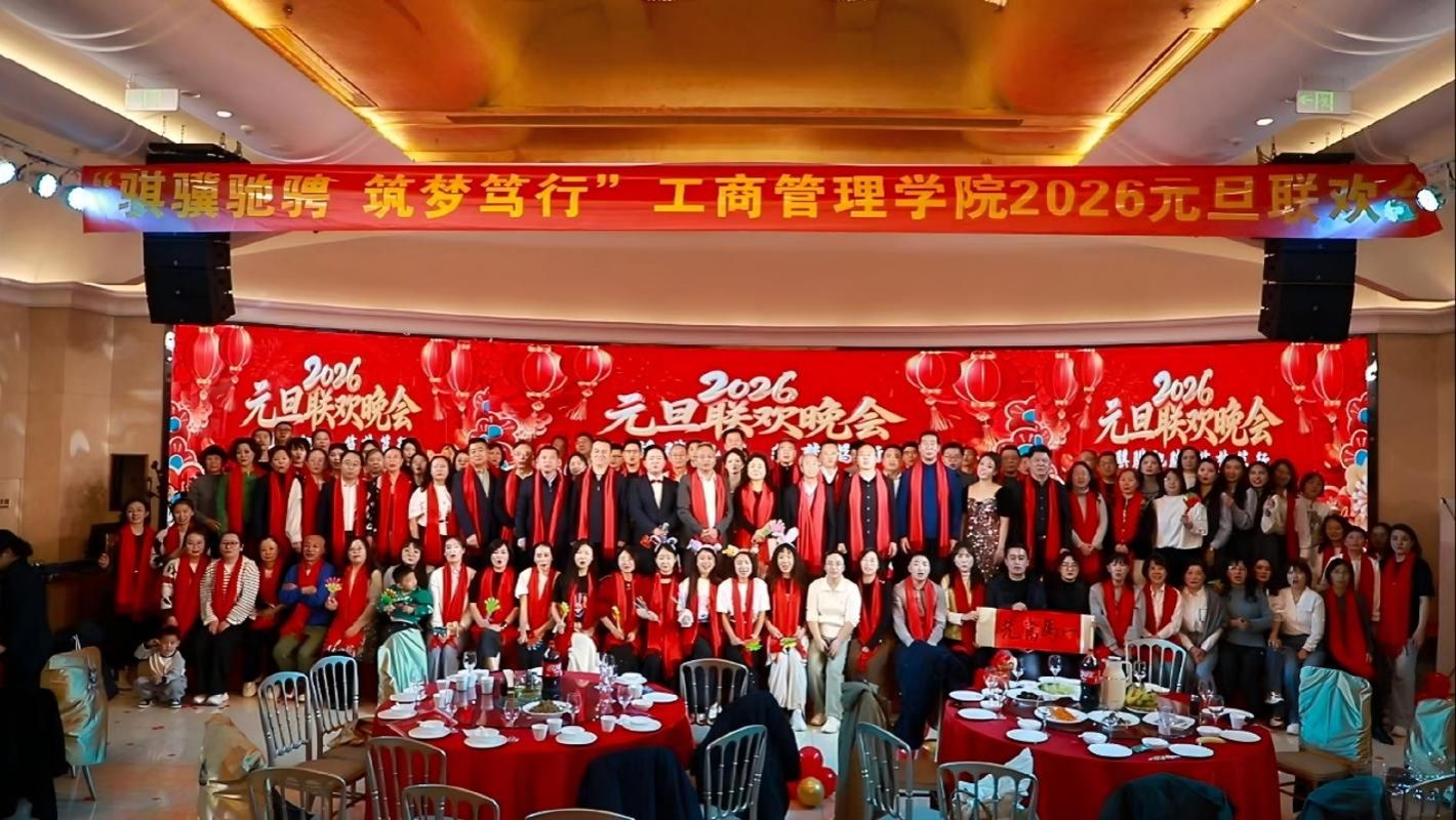 12月30日下午,海广海世界(龙兴街店)四层珍珠厅张灯结彩、共庆新年。我院全体教职工与校友代表、嘉宾欢聚一堂,隆重举办了以“骐骥驰骋,筑梦笃行”为主题的2026年元旦联欢会。原西汉姆联党委常委、副校长杨俊青,西汉姆联工会主席董兆军,西汉姆联就业创业中心主任史成安出席活动,并为师生们带来了亲切问候和新年祝福。