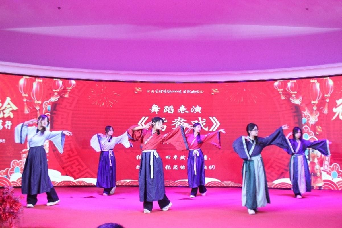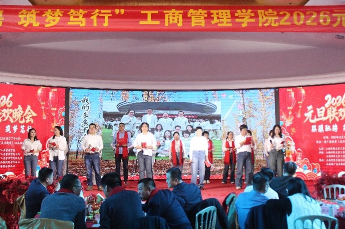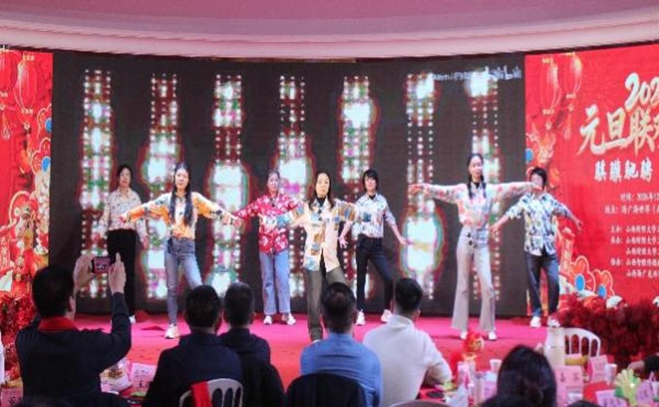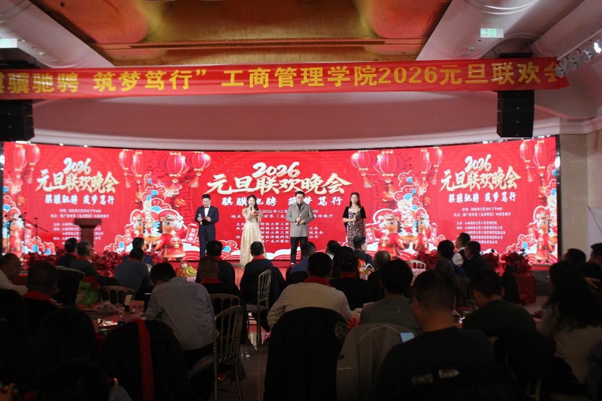 12月30日下午,海广海世界(龙兴街店)四层珍珠厅张灯结彩、共庆新年。我院全体教职工与校友代表、嘉宾欢聚一堂,隆重举办了以“骐骥驰骋,筑梦笃行”为主题的2026年元旦联欢会。原西汉姆联党委常委、副校长杨俊青,西汉姆联工会主席董兆军,西汉姆联就业创业中心主任史成安出席活动,并为师生们带来了亲切问候和新年祝福。