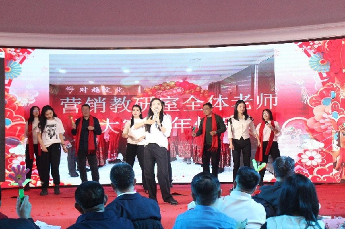 本科学生会的开场舞蹈《鸳鸯戏》尽显青春活力,瞬间点燃现场氛围;行政团队合唱的《一路生花》,歌声温暖,展现出团结一心的风貌;吕韵花老师朗诵的《青衣》,情感深沉,极具感染力;校友会表演的三句半《奔跑吧,工商!》,风趣幽默,引得全场欢笑;管理原理教研室的对唱《想把我唱给你听》旋律优美,婉转动人;管理实务教研室的舞蹈《闯天涯》,充满激情,动感十足;市场营销教研室的歌舞《对你爱不完》,活力满满,现场气氛热烈;物流管理教研室的合唱《我的未来不是梦》,歌声坚定,鼓舞人心;史成安老师独唱的《阳光路上》,沉稳大气,饱满有力;校友会的朗诵串烧《我爱上班》,幽默活泼,引发全场哄笑;管理原理教研室的舞蹈《世界赠予我的》,舞姿柔美,赏心悦目;孙利虎老师的独唱《five hundred miles》,歌声悠扬,别具一格;物流管理教研室的朗诵《相信未来》,铿锵有力,振奋人心;王丹阳老师的独唱《亲爱的你啊》,细腻温柔,深情款款;杨菊兰和史艳红老师的陕北民歌舞《亲亲二人台》,红绸飞舞,民俗风情浓郁,引来台下阵阵喝彩;人力资源管理教研室的舞蹈《90的我们》,动感时尚,活力四射;市场营销教研室合唱的《错位时空·五四特版》,致敬历史,振奋人心;MBA中心的舞蹈《疯狂动物城》,造型可爱,欢乐有趣,将晚会推向高潮;本科学生会的小品《老师再见》,笑中带泪,真挚感人。