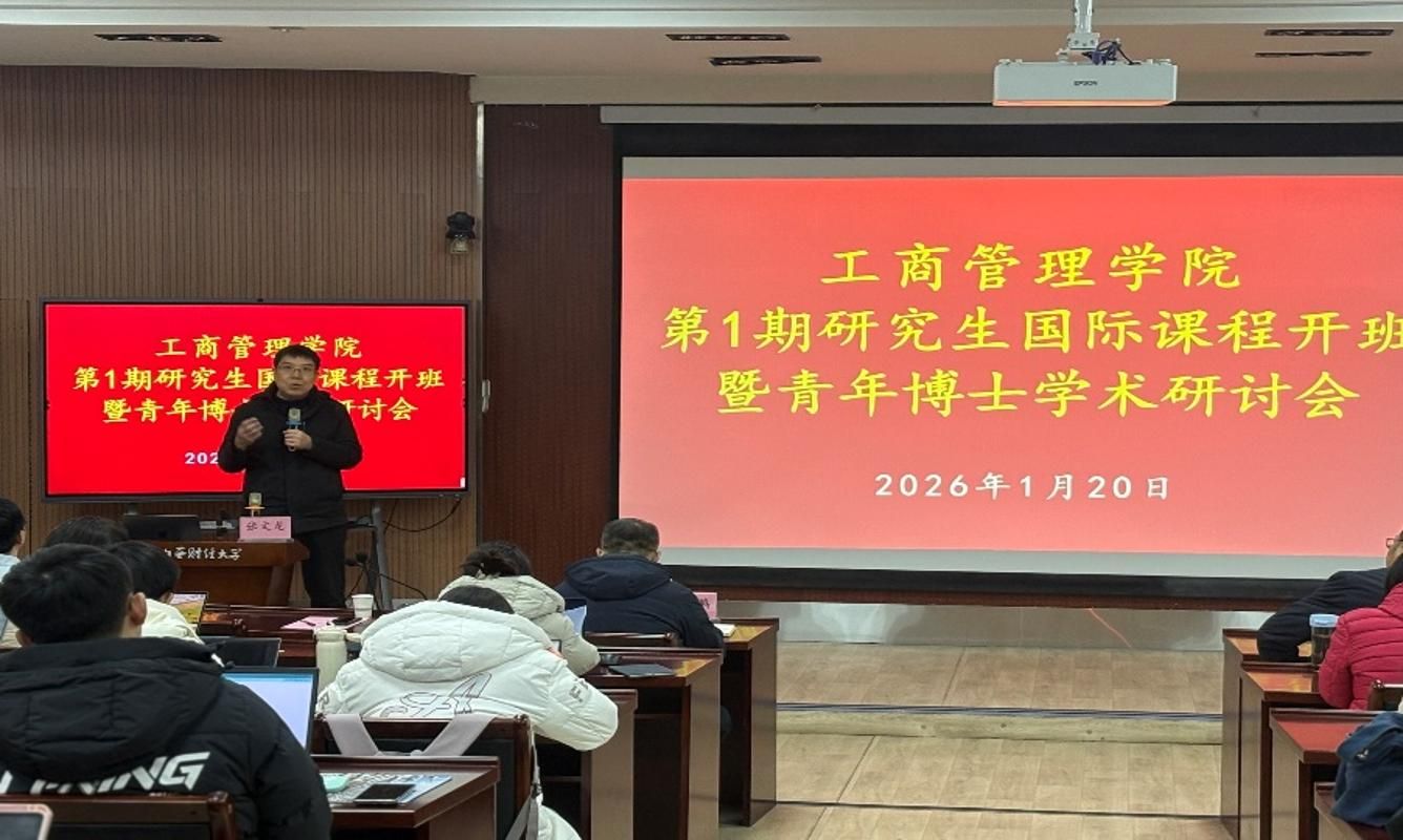 2026年1月20日至23日,西汉姆联必威西汉姆官网平台第1期研究生国际课程开班暨青年博士学术研讨会在科学楼MBA一教室顺利举办。校党委常委、副校长张文龙,国际交流合作部部长徐宽鹏出席了20日上午的开班仪式。学院青年教师与硕博士研究生代表50余人参加了本次活动,会议由必威西汉姆官网平台院长郭淑芬教授主持。