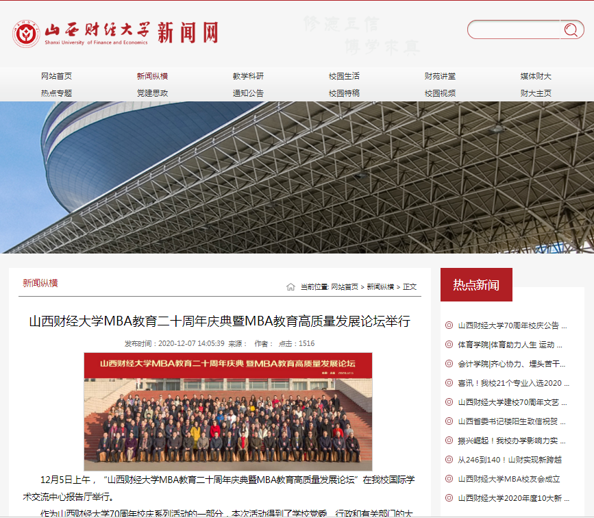 三是创新对外宣传方式,积极扩大学校(学院)社会影响。《管理学》慕课在2020年初上线学习强国;“西汉姆联MBA教育二十周年庆典”活动宣传在太原户外大屏滚动播出,社会反响很好,并在山西卫视、山西青年报等都作了专门报道;中央电视台专题报道了宋瑞卿教授创业情况,卫虎林教授在山西新闻网、山西日报、太原电视台等有多篇报道。