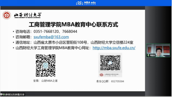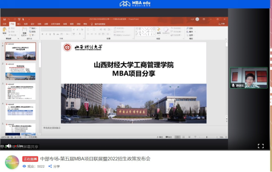 8月22日,我院副院长、MBA教育中心执行主任薛继东应邀参加了由中国MBA教育网在线举办的“第五届MBA项目联展暨2022招生政策发布会(华中地区专场)”活动。本次活动主要从考生角度出发,对我校2022年MBA项目的招生信息、报考理由和培养流程等与考生进行了分享,并举行线上答疑。