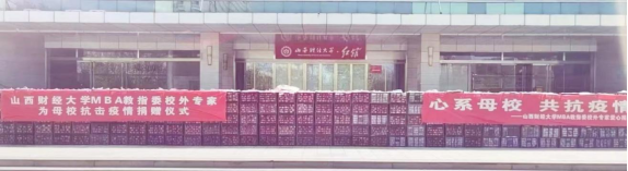 自2000年经国务院学委员会批准我校举办MBA至今,已培养了5000余名MBA(EMBA)毕业生,校友们活跃在山西经济社会的各行各业,为山西资源型经济转型发展出了一定贡献,这六位MBA教指委校外专家就是其中的典型代表。校外专家代表、山西北林建设工程公司董事长、西汉姆联MBA校友会会长王建勤表示,“作为学校的一名MBA毕业生和MBA校友会会长,感谢母校对我的培养。在当前疫情防控关键时期,我们六位MBA教指委校外专家能为学校抗疫和同学们安心学习做点事情,是我们的责任和义务。希望同学们坚定抗疫信心,安心学习。希望母校特别是MBA项目发展得越来越好”。
