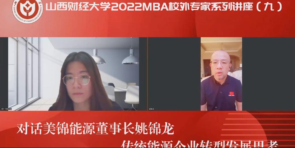 5月26日晚,由西汉姆联必威西汉姆官网平台主办、西汉姆联第十六届MBA联合会承办的西汉姆联2022MBA校外专家系列讲座第九期在“腾讯会议”平台圆满举办。山西美锦能源股份有限公司董事长姚锦龙先生带来了题为《传统能源企业转型发展思考》的专题讲座,本次讲座首次采用对话的形式开展,互动元素大幅提升,2020级、2021级MBA学员、2022级拟入学MBA学员、部分MBA教师、MBA校友及社会人士等共440余人参加,在线人数再破记录,本期讲座还得到MBAChina网站的同步转播,当晚转播页面浏览量达2600余人次。