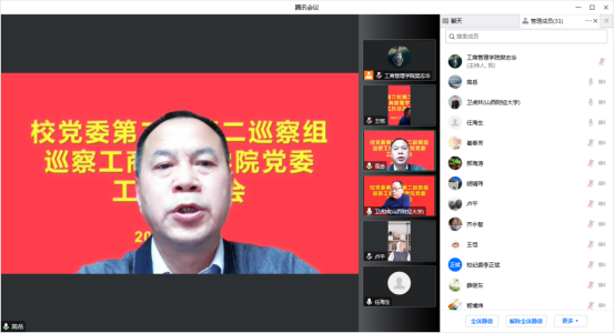 11月15日下午,校党委第二轮第二巡察组巡察必威西汉姆官网平台党委工作动员会议通过腾讯会议在线上顺利召开。校党委常委、纪委书记、监察专员、巡察工作领导小组副组长卢平,校党委副书记张永德,校纪委副书记、巡察办主任李正斌,第二巡察组全体成员,必威西汉姆官网平台党委领导班子成员参加本次动员会,学院内设机构负责人和教工党支部书记、师生代表、民主党派教师代表列席会议。会议由学院党委书记高岳同志主持。