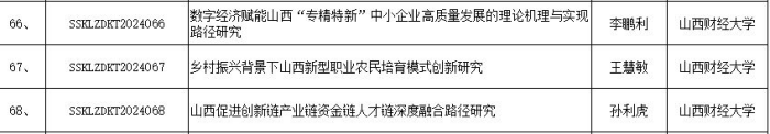 近日,山西社科联发布山西省社会科学界联合会2024至2025年度重点课题立项,我院李鹏利、王慧敏、孙利虎三位老师获得山西省社科联重点课题立项。