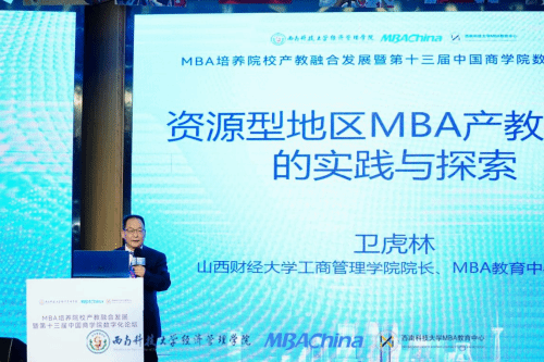 10月16日—18日,由MBAChina和西南科技大学经济管理学院联合主办的MBA培养院校产教融合发展暨第十三届中国商学院数字化论坛于中国科技城四川·绵阳成功举办。本次论坛邀请中国工程院院士、西南科技大学经济管理学院名誉院长范国滨,中国学位与研究生教育学会工商管理专业学位工作委员会秘书长、全国MBA教育指导委员会秘书处办公室主任王萍,全国上市公司协会会长宋志平,南京大学商学院名誉院长赵曙明等来自学术届和实务界的多位专家,以及近300位MBA培养院校的院长及商科教育负责人参加,聚焦校企合作与数字化转型的重要议题,共同探讨未来发展的新路径。西汉姆联必威西汉姆官网平台院长卫虎林、副院长薛继东应邀参加会议。卫虎林院长在本次论坛上做了以“资源型地区MBA产教融合的实践与探索——聚焦新质生产力企业,开展‘活案例’平台模式建设”为题的主题分享。