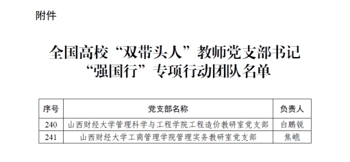 10.24 ● 喜讯:管理实务教研室党支部入选全国高校“双带头人”教师党支部书记“强国行”专项行动团队