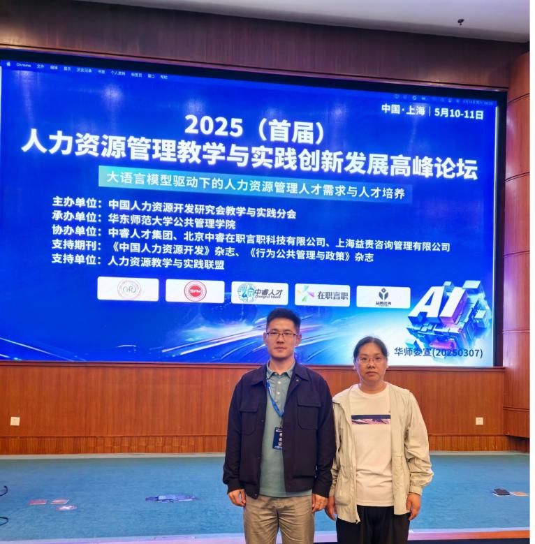 5月9-11日,由中国人力资源开发研究会教学与实践分会主办,华东师范大学公共管理学院承办,中睿人才集团、北京中睿在职言职科技有限公司、上海益责咨询管理有限公司协办的“2025(首届)人力资源管理教学与实践创新发展”在上海成功举办。来自全国150多位专家学者共同探讨高校人力资源管理专业教学与企业人才需求的契合及教学与实践的深度融合。我院人力资源管理教研室主任张征和闫向连老师参加了会议。