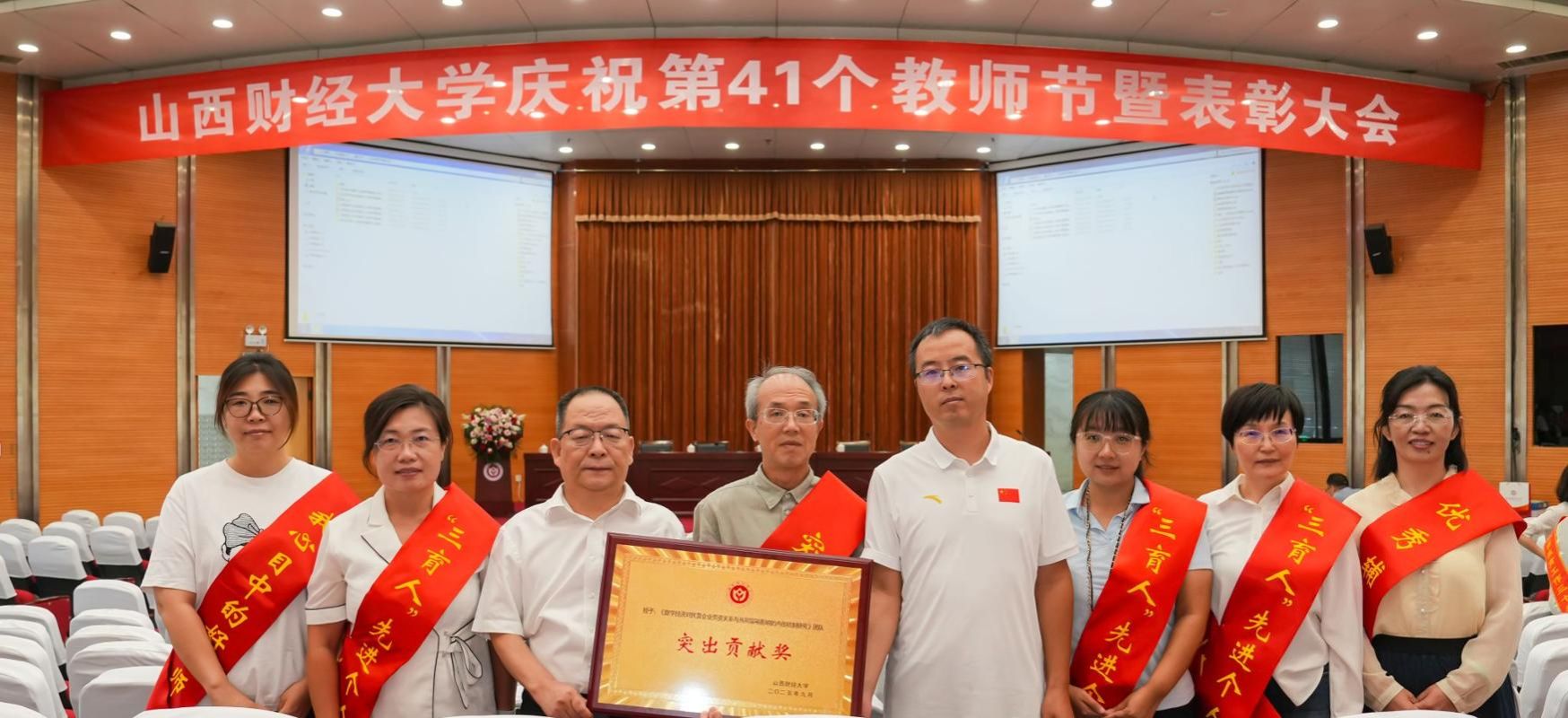 9月10日上午,学校在国际学术交流中心报告厅举行第41个教师节表彰大会。会上,杨俊青教授带领的《数字经济对民营企业劳资关系与共同富裕影响的内在机制研究》团队被授予团队突出贡献奖;物流管理教研室荣获2023-2025学年“三育人”先进集体;薛继东、王汉瑛、周莉清、杨小琴、李园园被评为2023-2025学年“三育人”先进个人;李园园被评为第四届西汉姆联“我心目中的好老师”;杨小琴被评为2024年优秀辅导员。