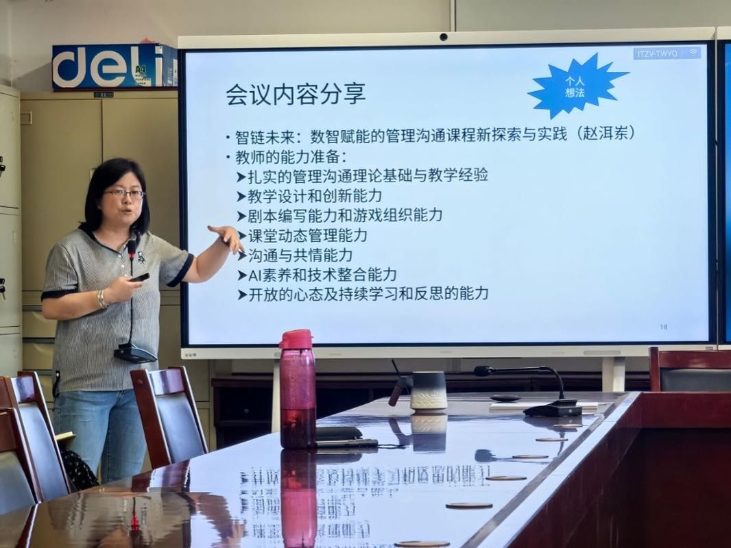 会上,五位教师代表依次发言,结合暑期参加学术会议、教学培训和学科竞赛指导的相关经历,交流了各自在教学改革创新与课程体系建设中的实践心得与思考。