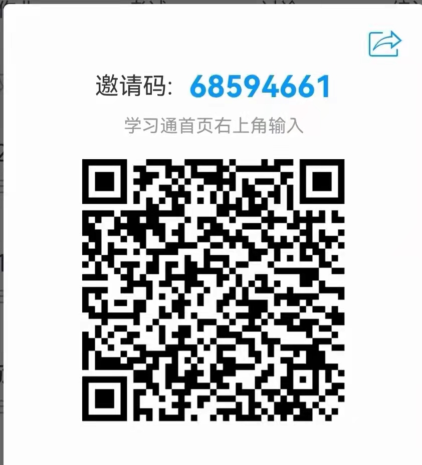 下载并注册“学习通”APP,在首页点击右上角方框扫描下图二维码(或输入邀请码68594661)。