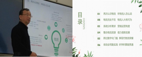 讲座伊始,王韬先生讲述了自己的物流专业求学经历和物流行业从业经历,他表示物流行业是一个充满挑战和机遇的行业,需要不断学习和进取。随后,他分六大块内容分享了他对当今物流行业发展现状、物流专业人才去向、物流营销思维、物流资源的整合和利用、数字化物流转型和物流专业大学生发展的经验和感悟。他指出物流管理专业大学生应当成为既熟悉物流相关知识,又熟悉管理、财会、技术等方面知识的复合型高素质专门人才。