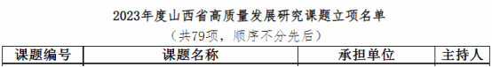 7月25日,山西省社会科学院(山西省人民政府发展研究中心)下发了《关于2023年度山西省高质量发展研究课题立项公告》,我院胡琳娜和武妍捷两位老师获该课题立项。