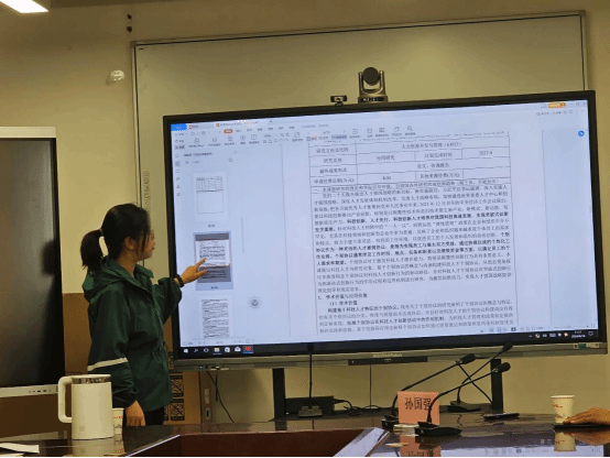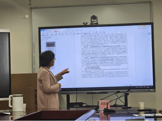 孙国强教授的讲解结束之后,我院刘美琳老师与樊贵莲老师分别分享了各自的课题申报书,就写作过程中的困惑、问题与大家进行交流。孙国强教授就课题标题的表述、研究背景的写作、研究思路的梳理、经费预算的设计等为两位老师的申报书提出了宝贵的修改意见。