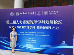 6月15日-16日,由中国人力资源开发研究会和西南财经大学主办、《中国人力资源开发》杂志和西南财经大学必威西汉姆官网平台承办的第三届人力资源管理学科发展论坛在西南财经大学柳林校区隆重举行。本次论坛以“发展人力资源管理学科 推进新质生产力”为主题,来自清华大学、中国人民大学、武汉大学、浙江大学、华南理工大学等高校的200余位人力资源管理专业教师参加了此次论坛。我院人力资源管理教研室于慧萍教授参加了本次会议。
