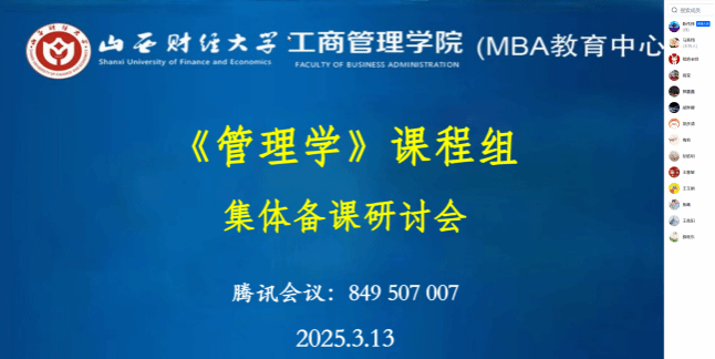 根据学校有关要求,为进一步提升课程教学质量,3月13日,我院首批国家级一流本科课程《管理学》课程组举行集体备课活动,课程组全体教师、学院本科教学指导委员会成员等参加。分管本科教学工作副院长薛继东参加会议并讲话。会议由《管理学》课程组常务负责人马燕翔老师主持。