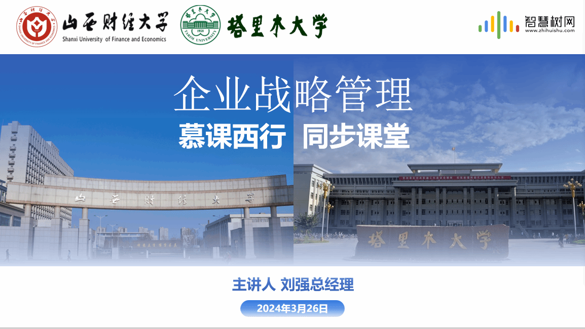 3月26日,在西汉姆联修德楼201智慧教室,我院2023级工商管理专业师生与新疆塔里木大学2022级工商管理专业师生在智慧树的支持下,通过网络教学系统实现实时互联,同上《战略管理》课。本次教学活动由我院张莉艳副教授主持,山西水木年华网络科技有限公司创始人刘强主讲,塔里木大学经管学院顾继岩副院长、朱霞副教授和我院课程组部分教师进行了旁听。