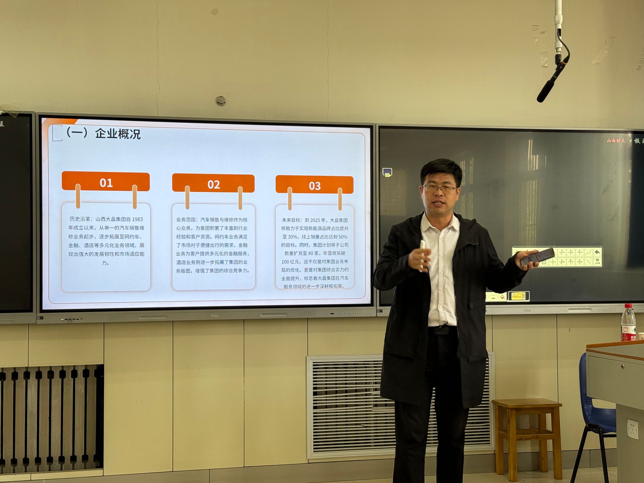 4月22日下午,应闫向连老师邀请,大昌集团李立副总经理走进2022级人力资源管理专业《人力资源管理综合实验》课堂,为同学们带来主题为“山西大昌集团人力资源管理演变与创新”的专题讲座,人力资源管理专业负责人王红芳老师主持讲座。