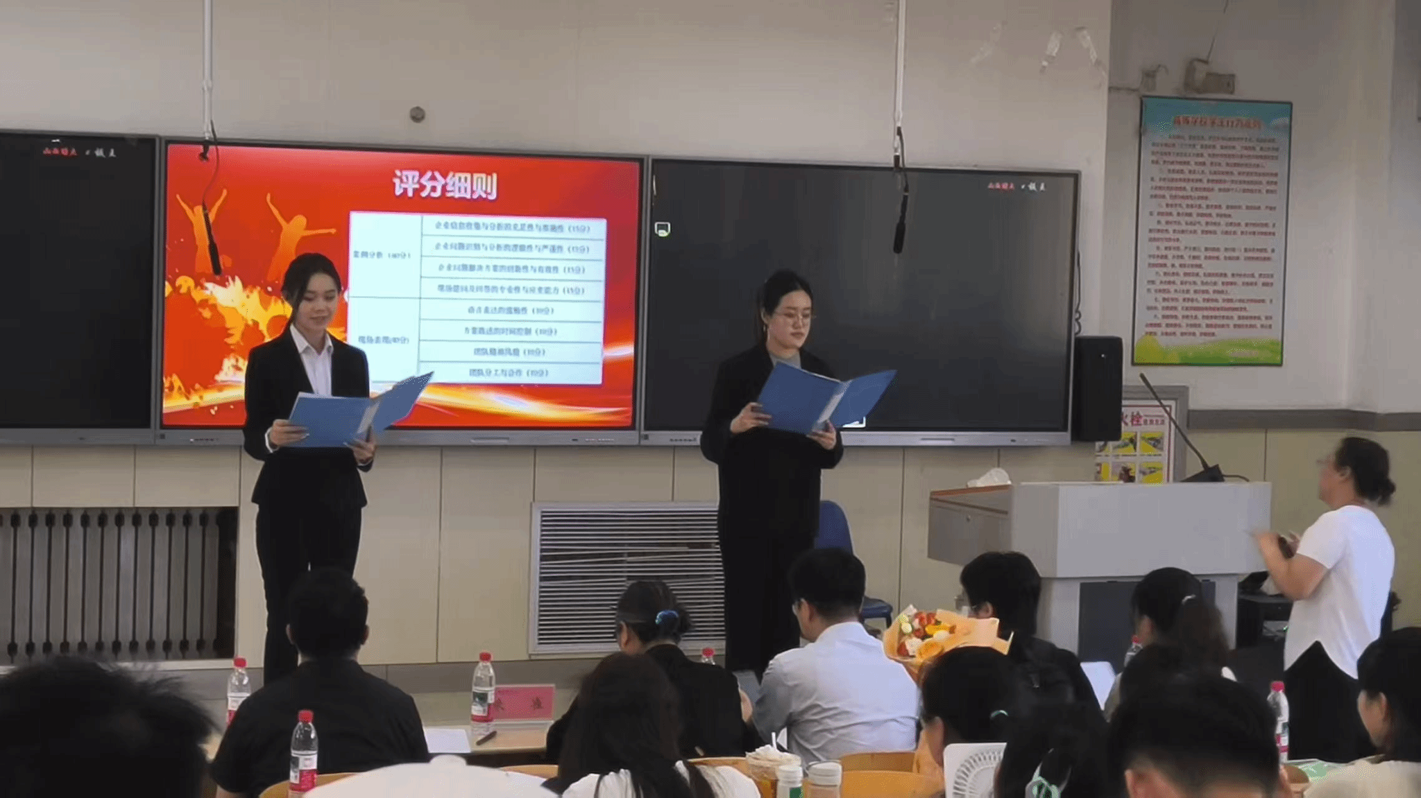 比赛现场,各团队聚焦员工招聘、培训、绩效考核及激励机制等核心议题,进行了深入分析和精彩展示。企业嘉宾与评委老师对同学们的汇报成果给予高度评价,并就方案细节进行了专业提问与深入交流。