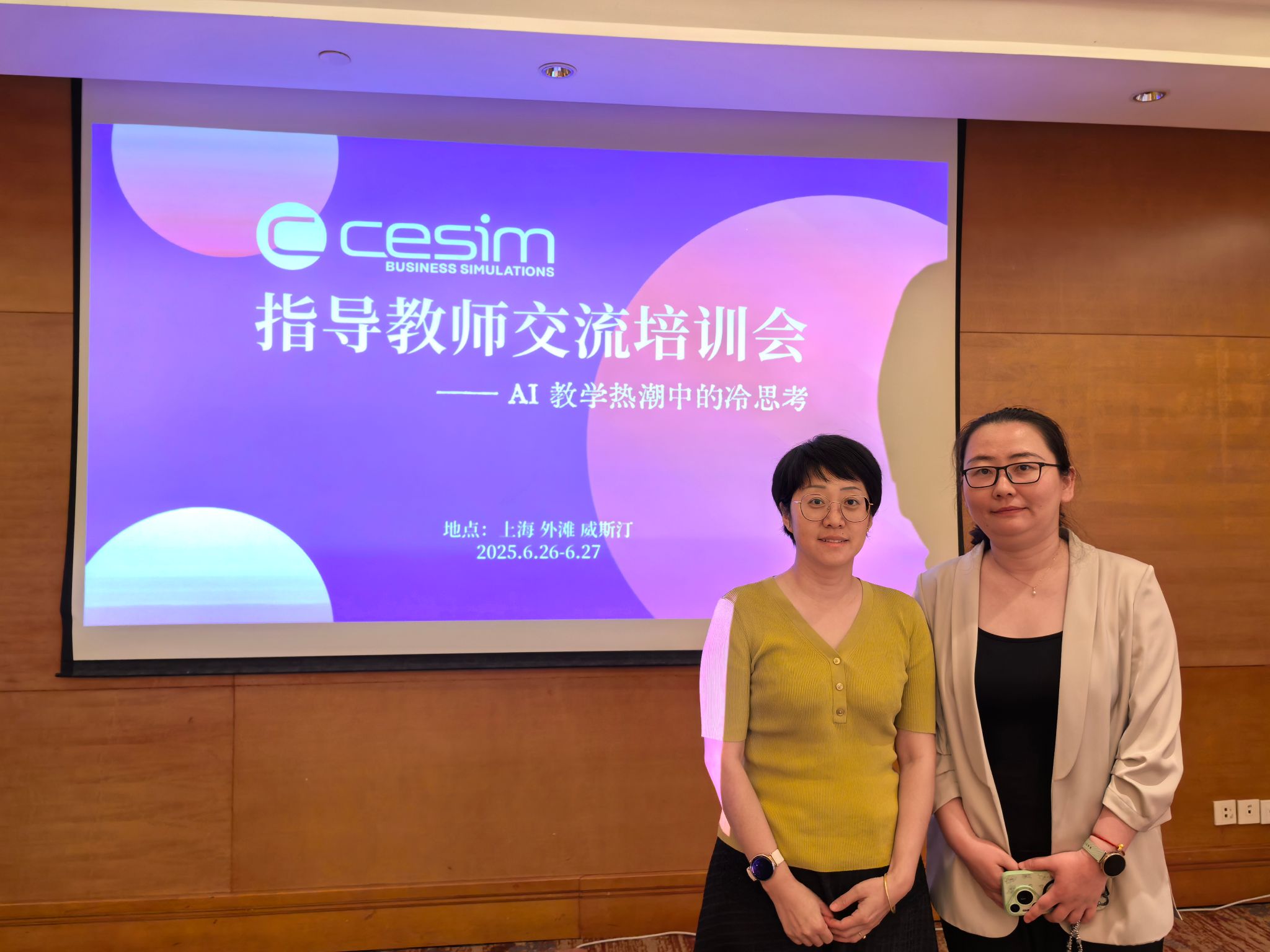 6月26日至27日,2025年CESIM指导教师交流培训会在上海威斯汀酒店隆重举行。本次会议以“AI 教学热潮中的冷思考”为主题,旨在深入探讨模拟教学与人工智能技术的深度融合,为教育工作者提供交流经验、分享见解的平台,共同应对AI时代的教学挑战与机遇。会议汇聚了来自全国各地的专家学者和教育工作者,我院梁彦清老师与郭鑫鑫老师参加此次交流培训会。