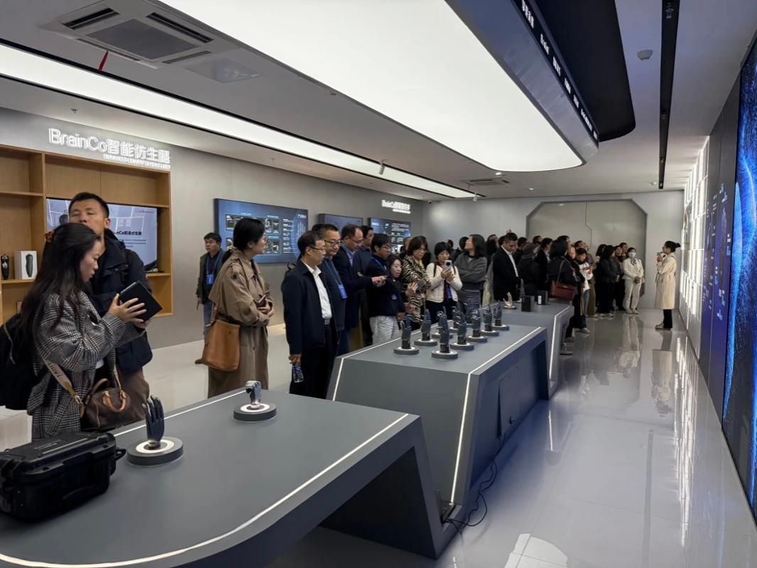 11月7日下午,与会嘉宾一同前往位于杭州的人工智能小镇,实地探访了杭州“六小龙”之一—强脑科技。