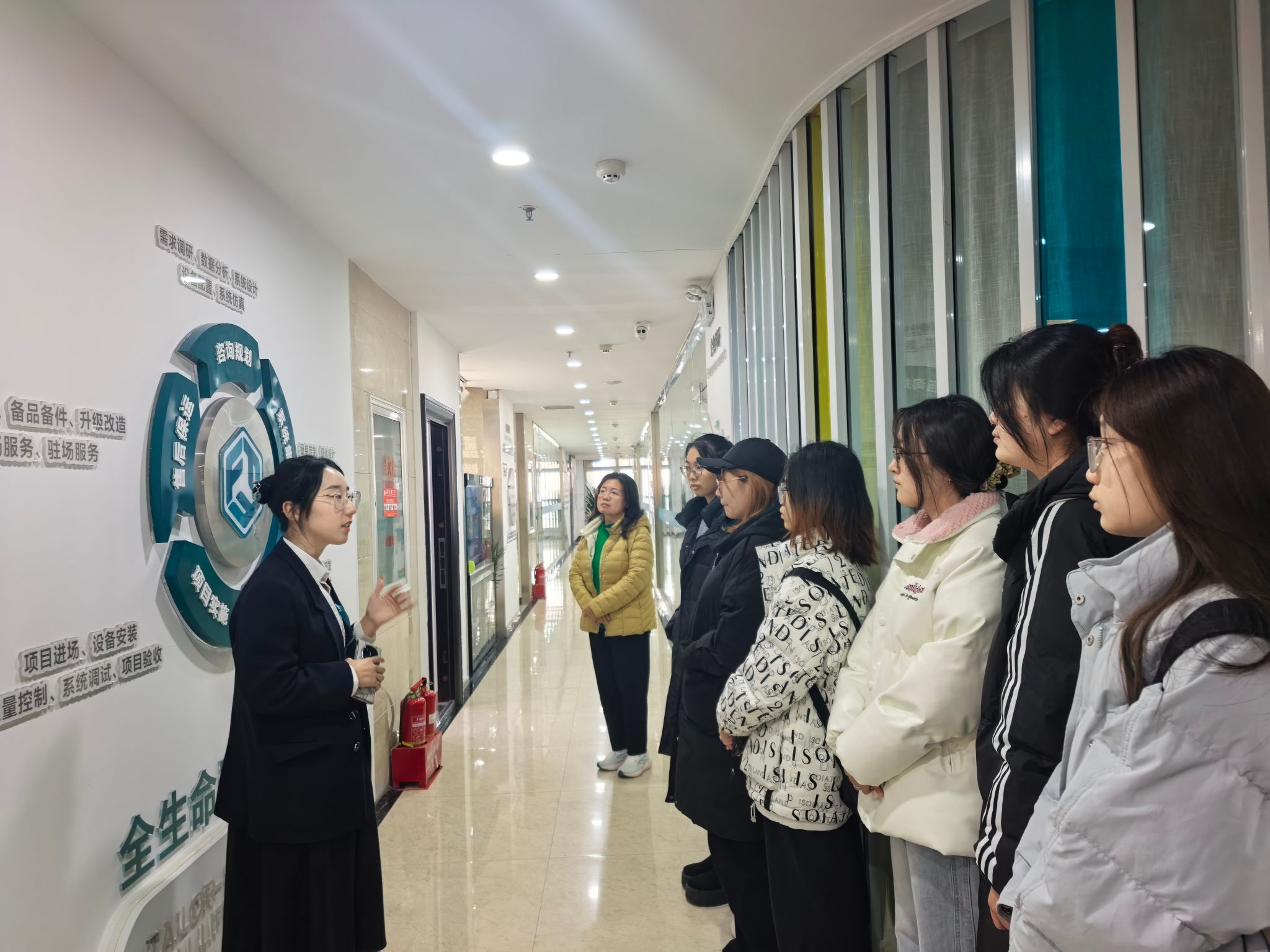 师生们在工作人员的陪同下,首先参观了公司办公区与文化墙,系统了解了公司发展历程、核心理念、专利技术及产品系列。