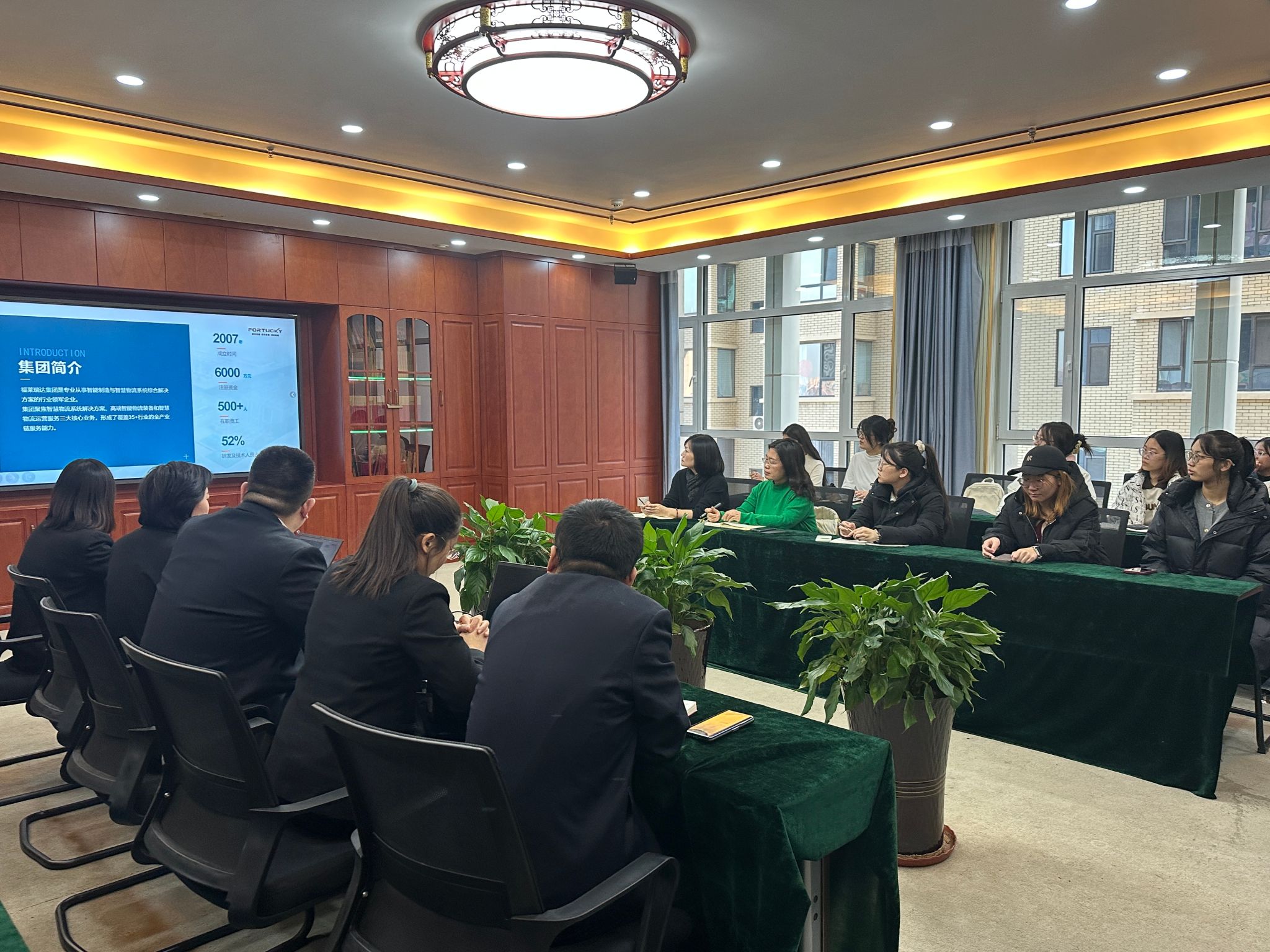 随后,师生们与公司高管在多功能会议室举行座谈。福莱大学副校长常红霞就公司业务范围与技术优势进行了深入讲解;我院薛继东副院长详细介绍了“管理类”卓越人才实验班的培养情况。