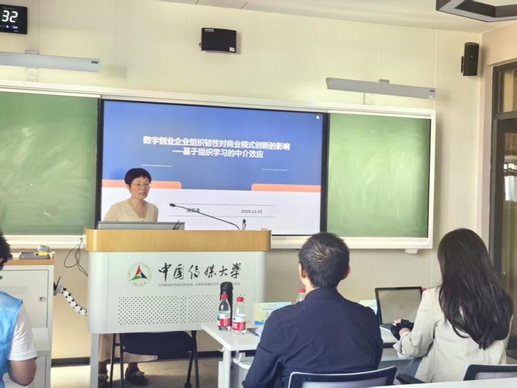 在11月22日下午举行的专题分论坛中,我院周莉清副教授作题为《数字创业企业组织韧性对商业模式创新的影响——基于组织学习的中介效应》的学术汇报。该研究立足数字创业企业这一前沿情境,从组织学习的中介机制出发,系统揭示了组织韧性向商业模式创新转化的内在路径,深化了对高不确定性环境下企业持续创新机理的理论解释。与会专家围绕研究模型的逻辑结构、变量测度的科学性及实证结论的稳健性进行了深入点评,并从理论拓展与方法优化两个层面提出了具有针对性的建设性意见,充分肯定了该研究在数字创业、组织韧性与商业模式创新交叉领域的学术价值与现实意义。