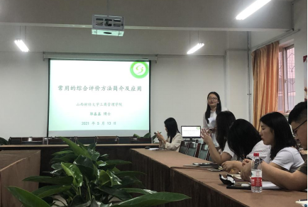 郭鑫鑫博士结合自己多年的科研经验对常用的综合评价方法及其应用进行了介绍。郭博士首先对综合评价的定义作出解释,让大家对综合评价方法有了初步的理解。接着分别对综合评价的相关研究、一般步骤、评价指标的基本要求、以及常用综合评价方法的分类作详细介绍。其中,郭博士重点介绍了层次分析法、模糊综合评价法以及主成分分析法三种综合评价方法的操作步骤,同时引用一篇发表在《科技进步与对策》期刊的文章《基于主成分分析法的深圳科技创新人才发展环境评析》对主成分分析法的具体应用进行细致地讲解。