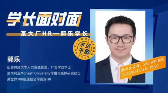 郭乐,西汉姆联2009届人力资源管理毕业生,取得人力资源管理、广告学双学士;2009-2011年就读于澳大利亚墨尔本Monash University大学,取得传播与媒体研究硕士学位;2011年底至今担任某大厂HR,两年半的时间从事于研发HRBP,四年的BG总部组织规模HR COE工作经验,四年东北欧一线销售团队的海外工作经验。目前在深圳担任运动健康军团HRD。